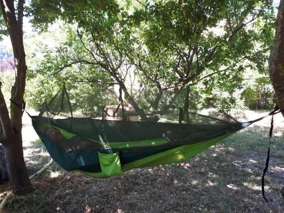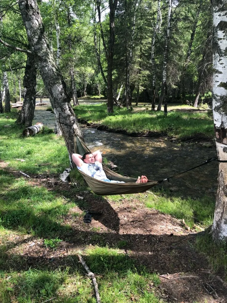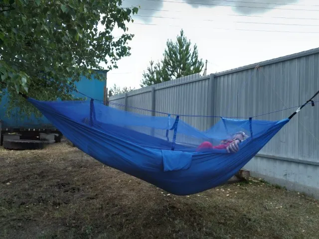 Cool hammock. i’m afraid to test for two dad. With a daughter of about 95-100 kg calmly