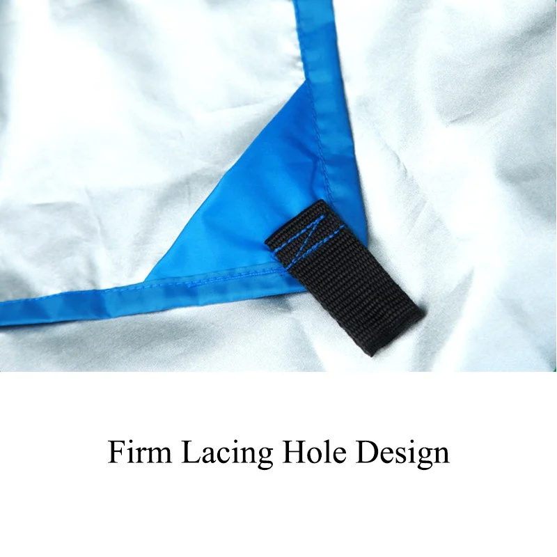 Item: Waterproof & UV protection sun shelter Size: 300cm*300cm Color: blue, army green Material: oxford cloth, silver coating Features: waterproof, UV protection, lightweight, thin, multifunctional Activities: can serve as sun shelter, camping tent, picnic awning, beach canopy, car-tent, yoga mat… Package included: 1*Sun shelter 1*Storage bag 1*nail bag 6*aluminum nails 6*wind ropes Notice: 1. Manual measurement, there may be 3% of error. 2. Due to the condition of display and different batches, the real color of this product may be a little different. 3. The poles are only for show, they aren’t included in the package.